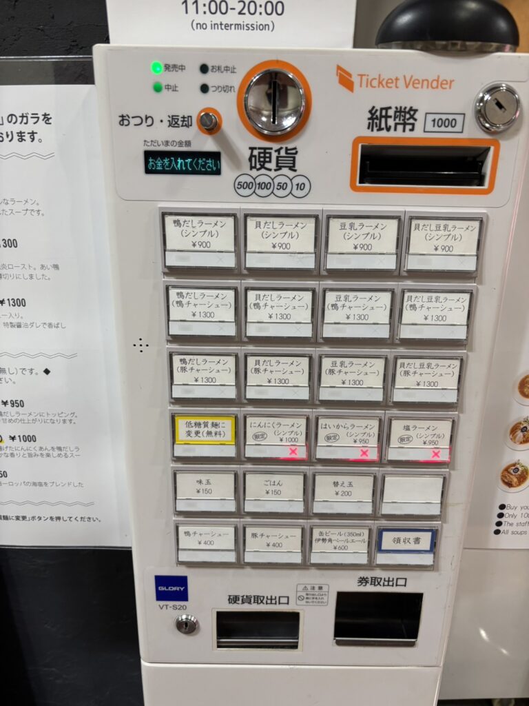 注文は入口の前にある券売機で行います。